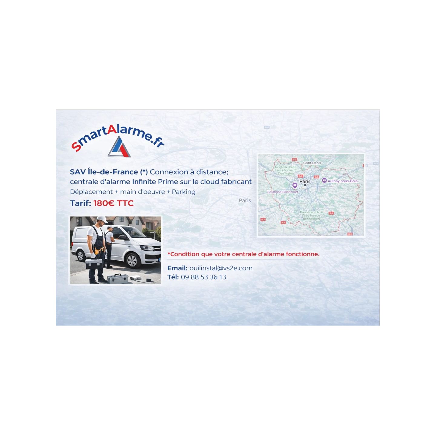 Nous proposons un service de SAV professionnel en Île-de-France pour les systèmes d'alarme Infinite Prime, avec une connexion à distance sur le cloud fabricant. Ce service inclut :