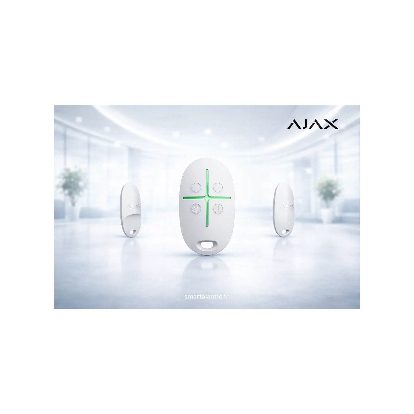 Compatible avec les systèmes Ajax Superior Line, elle permet d’activer ou de désactiver l’alarme, de lancer un mode partiel, ou encore de déclencher une alerte panique en cas de danger.