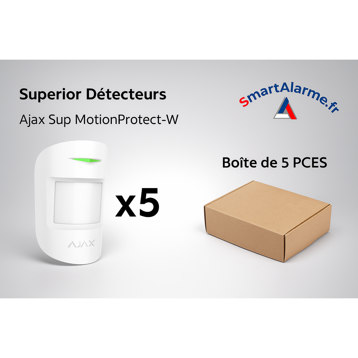 Le Pack Ajax Sup MotionProtect-W (x5) est spécialement conçu pour protéger plusieurs zones intérieures avec un haut niveau de fiabilité.