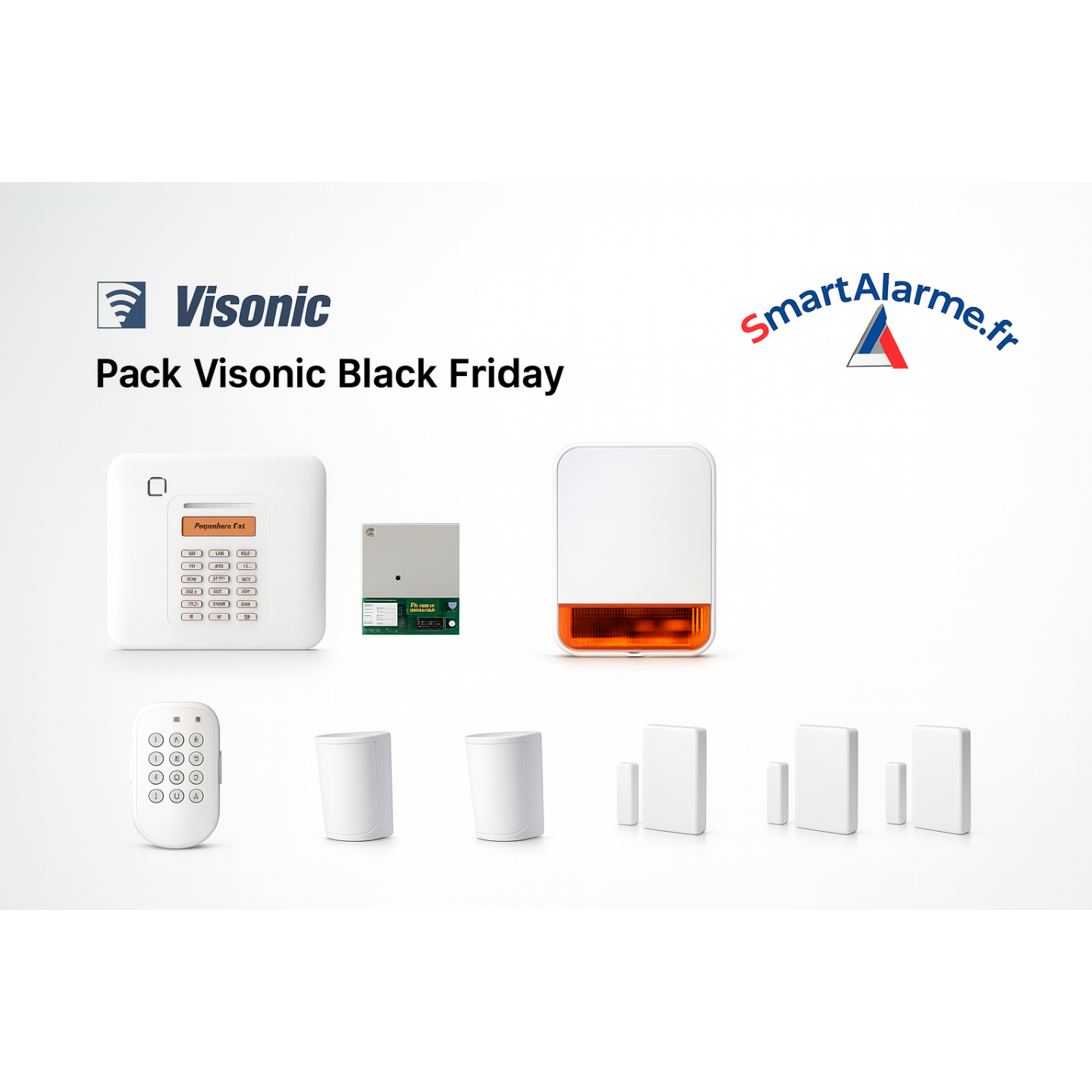 Ce Pack Visonic Black Friday regroupe les équipements essentiels pour une sécurité complète, fiable et professionnelle, basés sur la technologie PowerG de Visonic (groupe Tyco).