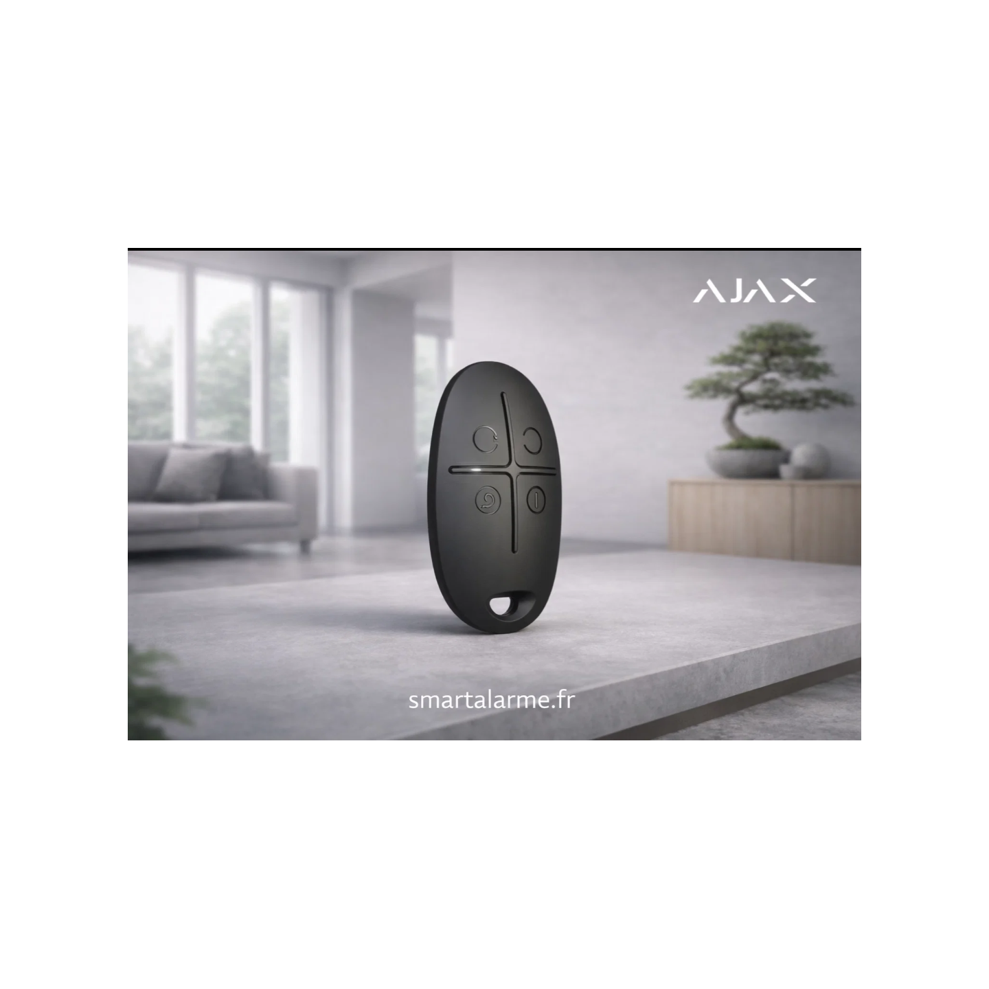 Le SpaceControl-B est une télécommande intuitive offrant une gestion simple et rapide du système de sécurité Ajax.
