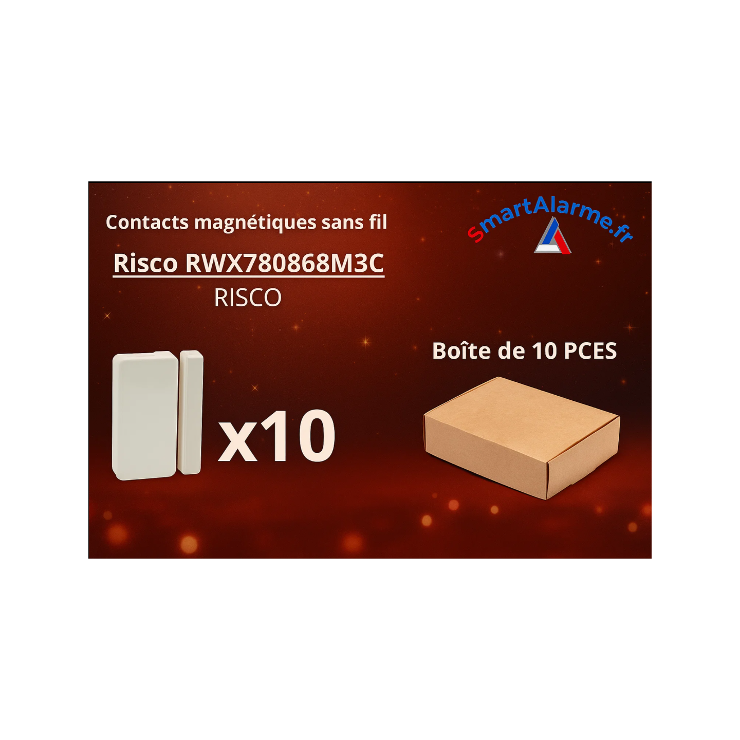 Pack Noël – Lot de 10 Contacts magnétiques sans fil Risco RWX780868M3C – 868 MHz