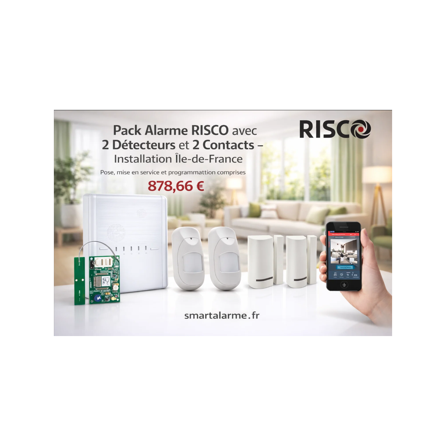 • Pack Alarme RISCO avec 2 Détecteurs et 2 Contacts – Installation Île-de-France