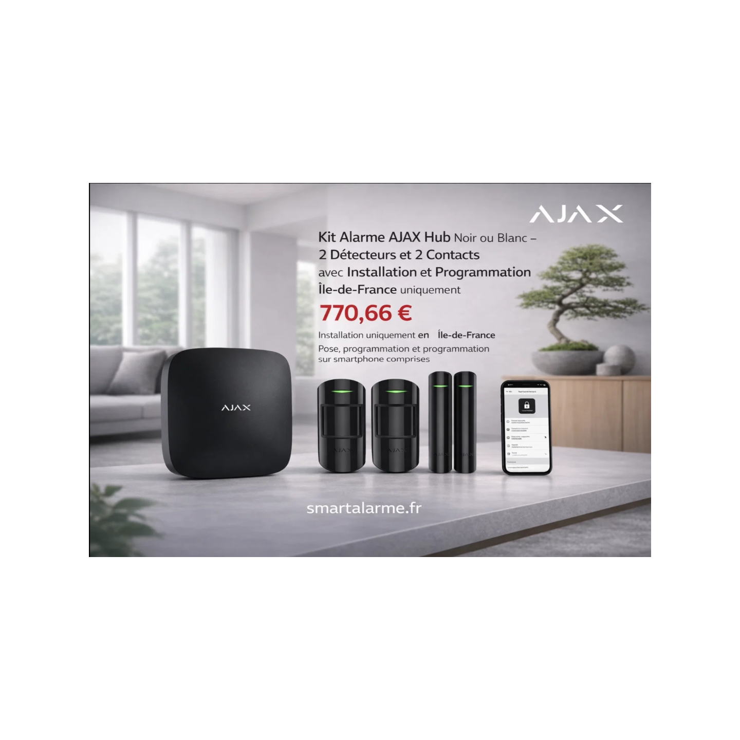 • Kit Alarme AJAX Hub Noir ou Blanc – 2 Détecteurs et 2 Contacts avec Installation et Programmation – Île-de-France